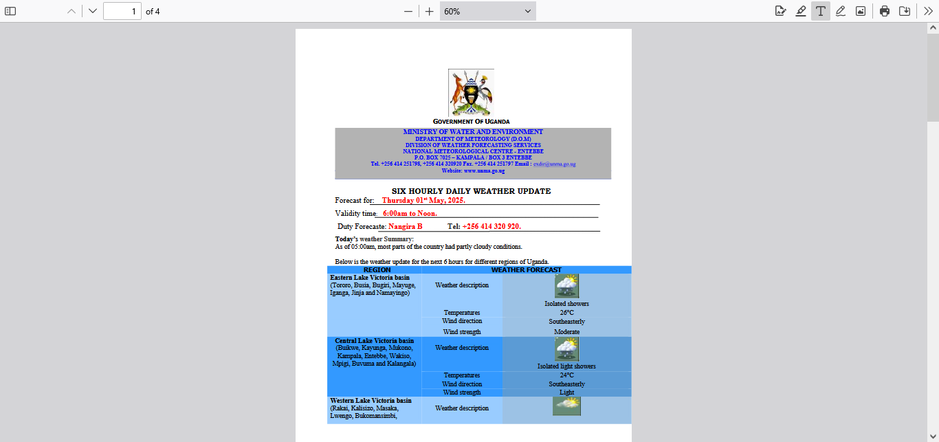 Duty Forecaste: Nangira B Tel: +256 414 320 920.
